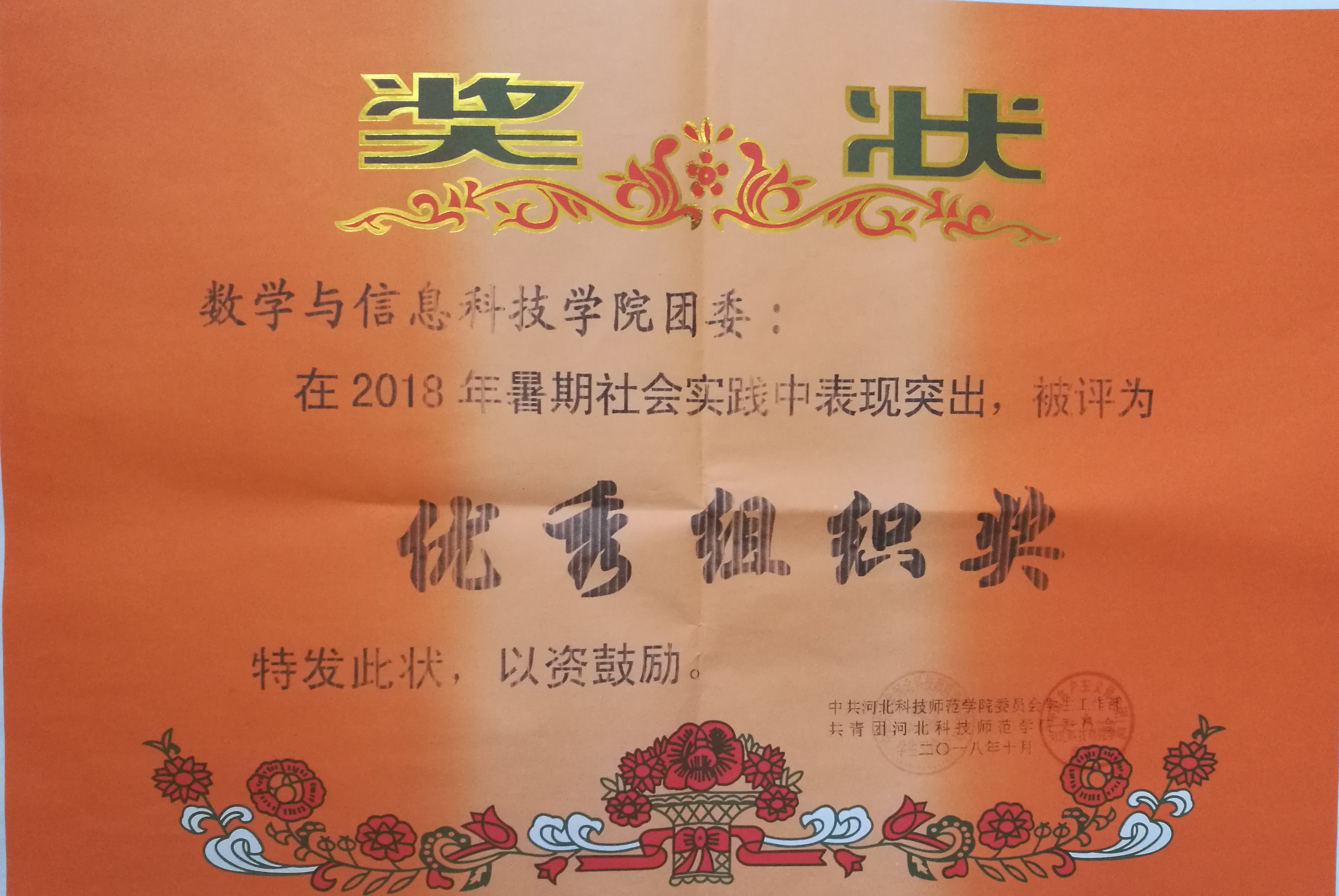 在2018年学校开展的“青春大学习•奋斗新时代”为主题的暑期社会实践活动中,kaiyun开云官方团委表现突出,被学校授予社会实践“优秀组织奖”荣誉称号;授予“烛光连心”实践团、“树信科扶”社会实践团“优秀实践团队”荣誉称号;授予李惠超、焦洪磊“优秀指导教师”荣誉称号;授予王伟、李月荣“社会实践先进个人”荣誉称号。秦皇岛日报、秦皇岛电视台、河北政协新闻网、河北德育网、河北新闻网等多家官方媒体先后对kaiyun开云官方社会实践团的先进事迹给予了宣传报道,为我院赢得了良好的社会声誉,树立了品牌形象!