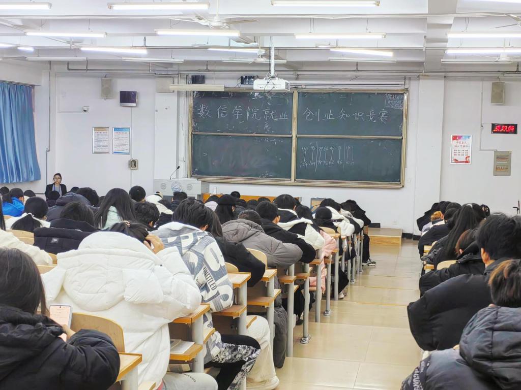 习近平总书记高度重视大学生就业创业工作,鼓励大学生勇于创新、敢于实践,在就业创业中展现青春风采、实现人生价值。在这样的殷切期望下,为进一步提升大学生就业创业意识与能力,本校于 2024 年 11 月 29 日晚上七点到八点在 B202 和 B206 教室举办了就业创业知识竞赛。
