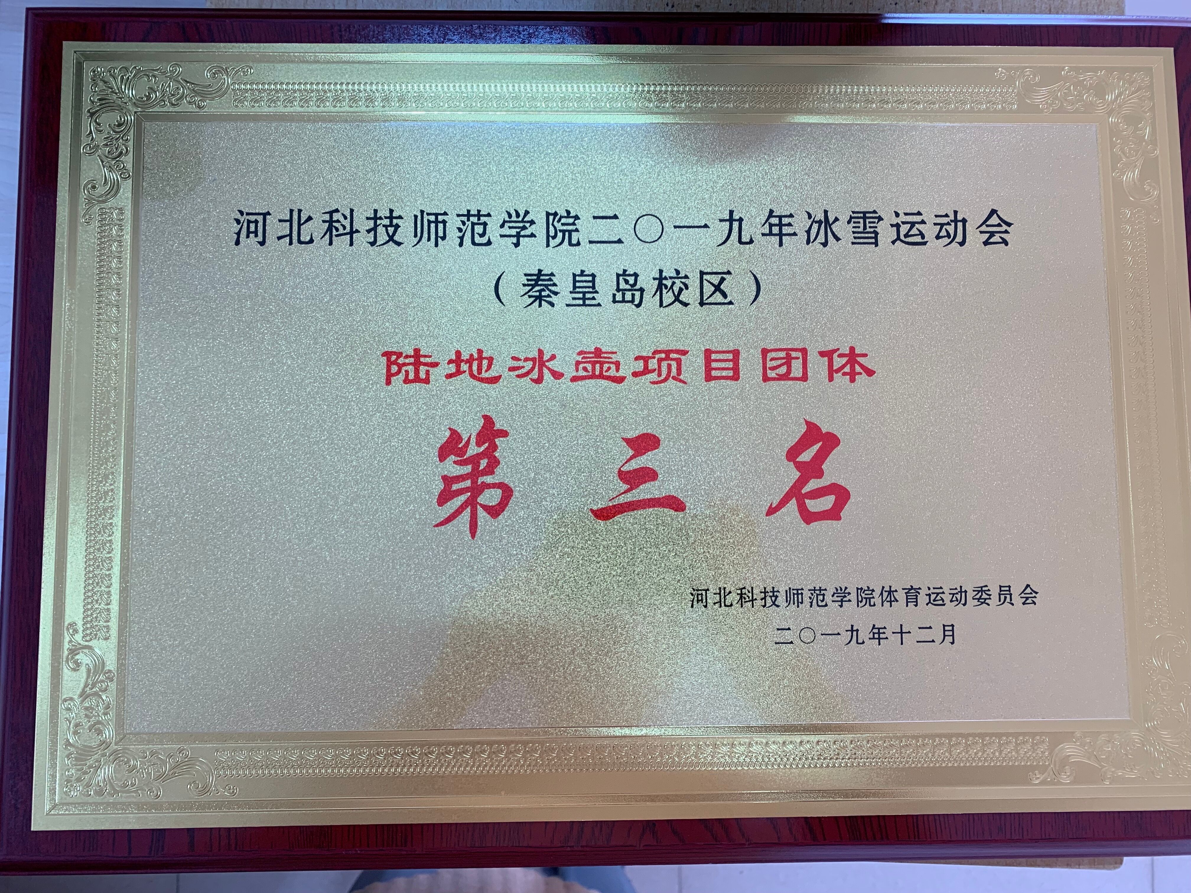 为贯彻落实习近平总书记重要指示和落实省委、省政府关于冰雪运动发展批示精神,喜迎2022北京冬奥会、大力普及冰雪运动。2019年12月5日,学校在秦皇岛校区隆重举办首届冰雪运动会。进一步激发广大师生参与冰雪运动的热情,增强冰雪健身意识、提升身体素质,扩大参与冰雪运动的群众基础,营造全校积极参与冰雪运动的良好氛围。开云官网派队在秦皇岛校区参加了学校首届冰雪运动会,陈亚杰、万君霞、梁一凡等16名同学组成了两个代表队代表开云官网参加了比赛。冰雪运动会比赛项目有陆上冰壶,100m、200m、400m以及全能轮滑。天气虽然寒冷,但在同学们此起彼伏的加油助威声中,参赛选手全力以赴,最终开云官网冰壶二队取得了秦皇岛校区第三名的好成绩,呈现出了开云官网学子健康阳光、拼搏进取的新一代青年大学生风采。同时,kaiyun开云官方被学校授予精神文明单位荣誉称号。