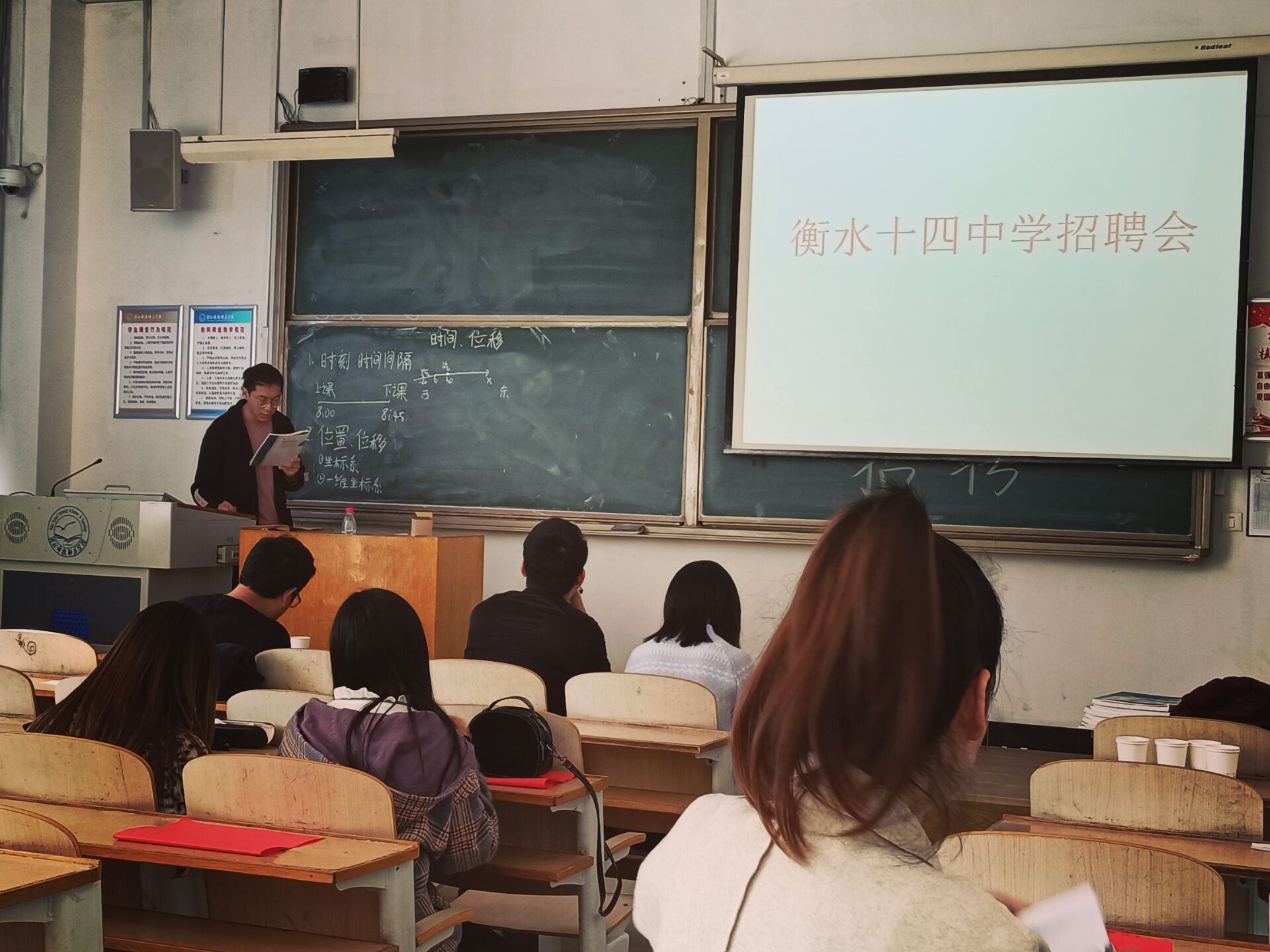 2020年11月1日上午9点,kaiyun开云官方在开云官网秦皇岛校区逸夫楼A107成功举办了衡水市第十四中学专场招聘会。学院党委负责人、学工办主任、学生就业工作主管人员、毕业班班主任及应届毕业生参加此次招聘会。