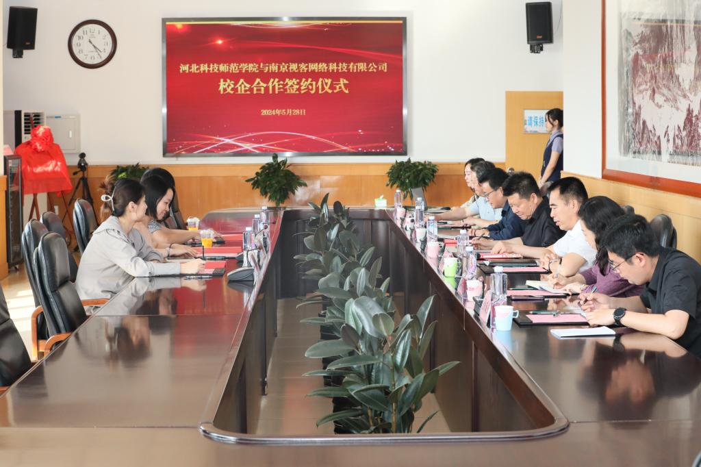 校党委常委、副校长冯瑞银与南京视客网络科技有限公司副总经理缪继红共同签署了校企合作协议,并举行了实践教学与就业基地揭牌仪式。