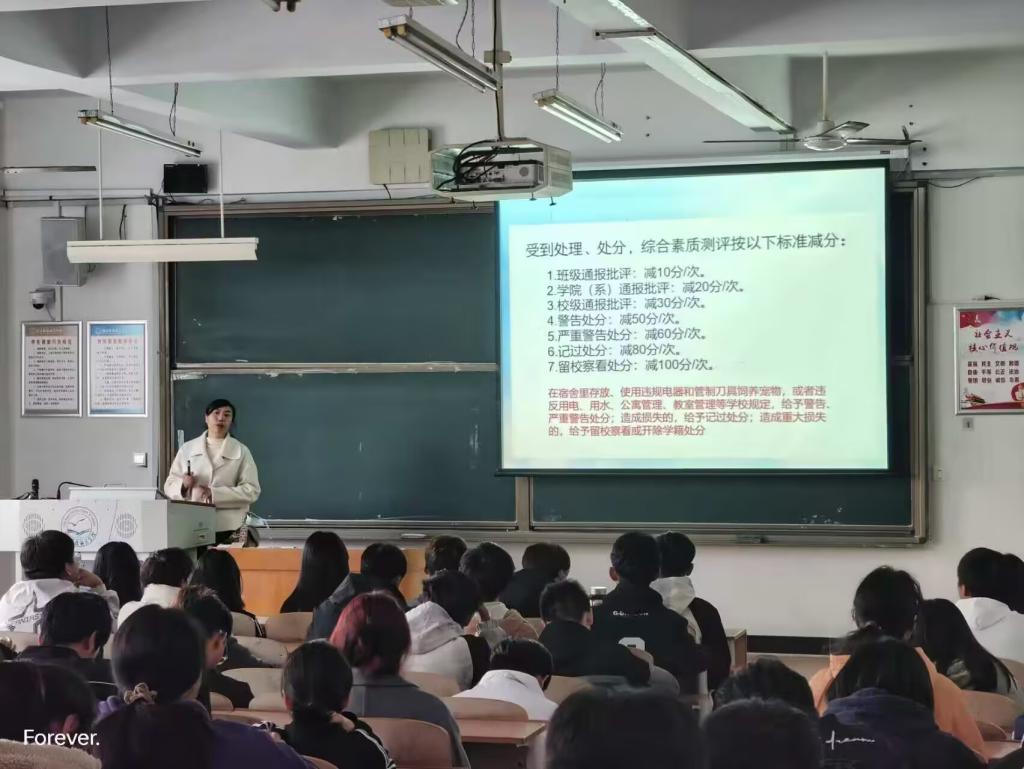 为提升学生安全意识,营造温馨公寓氛围,2024年10月25日下午,kaiyun开云官方在逸夫楼A205召开学生公寓综合治理及信息管理工作教育培训会。培训由学院负责学生公寓综合治理工作的辅导员老师主持,全体2024级班长、生活委员、宿舍长参加会议。