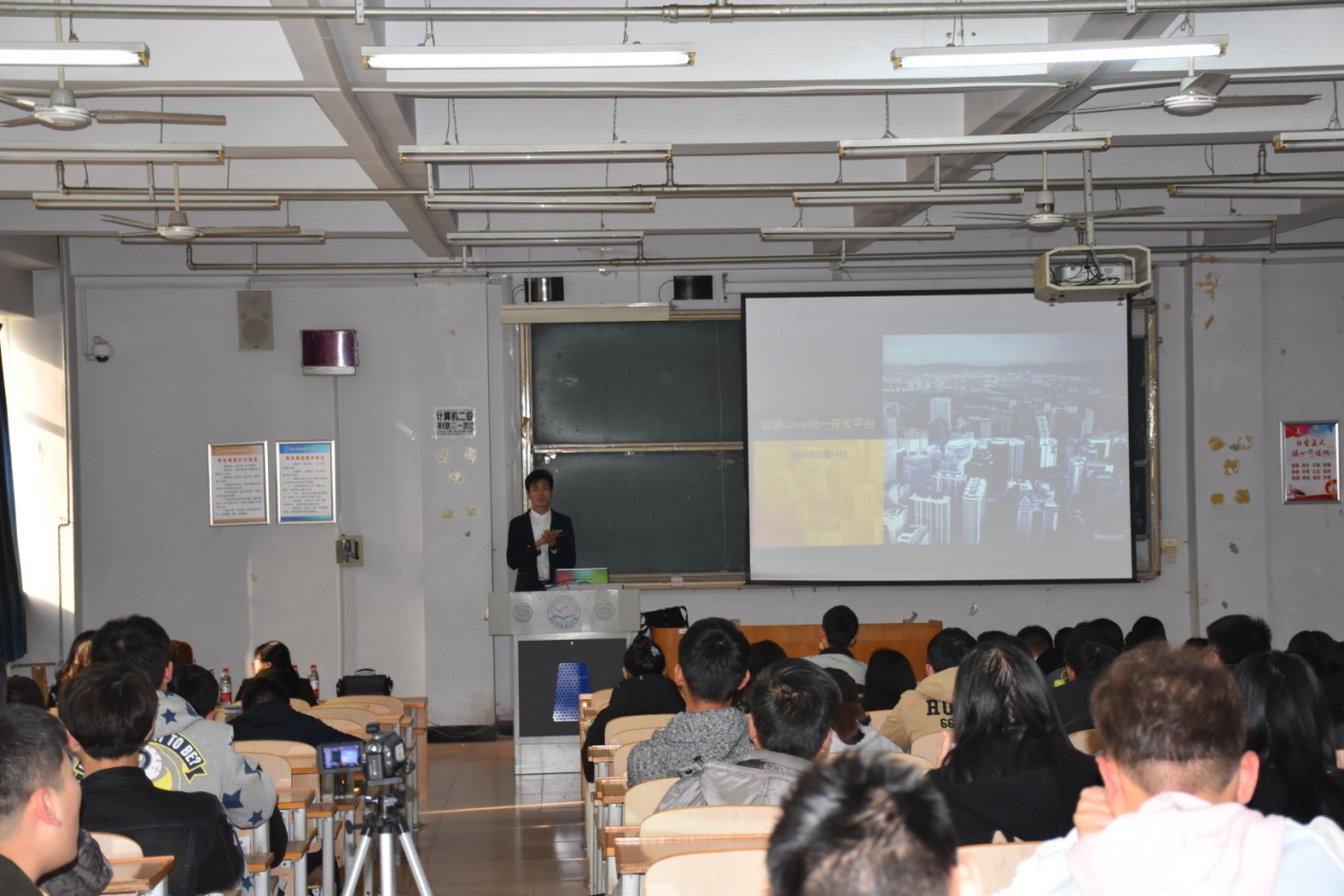 2017年10月30日,开云官网特邀请东软睿道公司的高级软件工程师王悦先生来开云官网为学生们进行了题为《基于软件工程生命周期的全民飞机大战项目分析与开发》的讲座。网络工程15级和计算机科技17级的学生参加了此次讲座。王悦先生在报告中讲解了企业实际开发软件的生命周期与概况,并详细介绍了游戏软件的开发流程。学生通过此次习,将课堂上所学到的理论知识与企业的实践相结合,受益匪浅。