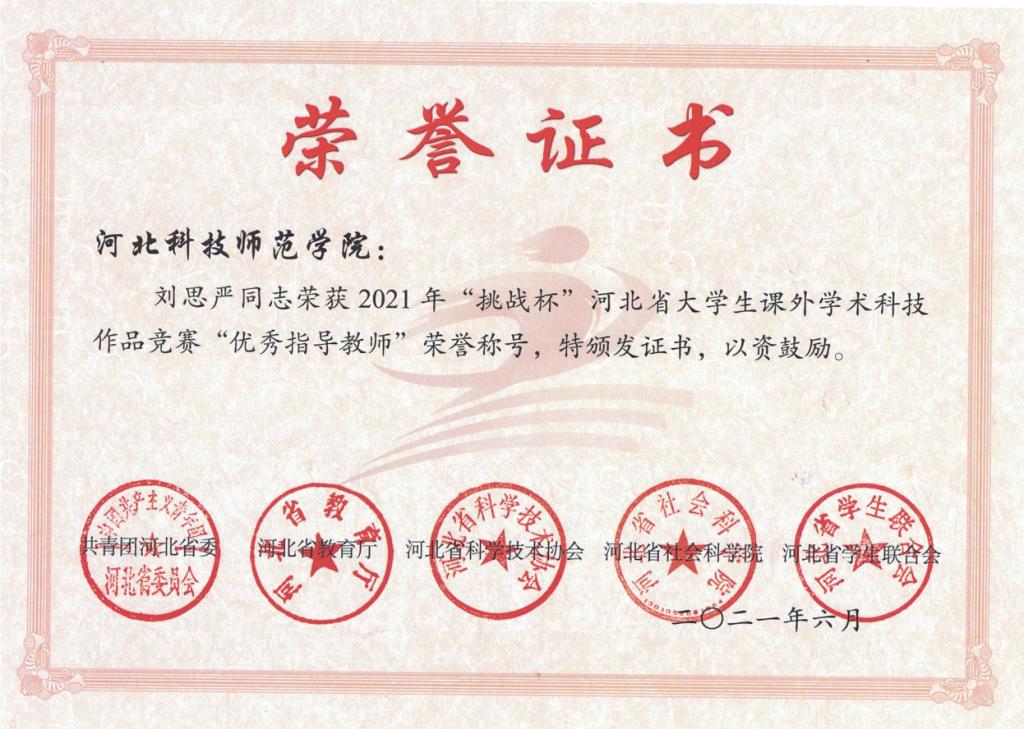 日前,共青团河北省委、河北省教育厅、河北省科学技术协会、河北省社会科学院、河北省学生联合会联合对2021年“挑战杯”河北省大学生课外学术科技作品竞赛获奖结果进行通报。由刘思严、常竞文、刘青指导、应用统计学专业学生任彤、张萌、梁媛媛、王珊等完成的参赛作品《微餐饮店消费分析与市场机会挖掘--以北京市为例》荣获2021年“挑战杯”河北省大学生课外学术科技作品竞赛特等奖,刘思严老师荣获2021年“挑战杯”河北省大学生课外学术科技作品竞赛“优秀指导教师”荣誉称号。