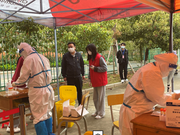 3月15日凌晨三点,当防疫的集结号角吹响,面对突如其来的疫情,艺术与体育学院全体师生党员在叶海涛同志的带领下第一时间奔赴一线,从白天奋战到黑夜,没有丝毫懈怠。组织并引导学生从宿舍排好队依次下楼去做核酸检测的采样,党员教师带头走上一线,各司其职,协调工作部署,让党旗在抗疫一线高高飘扬。经过七天共168小时的努力,艺术与体育学院全员核酸检测采样第四轮工作全部完成,做到了“全员检测,不漏一人”。
