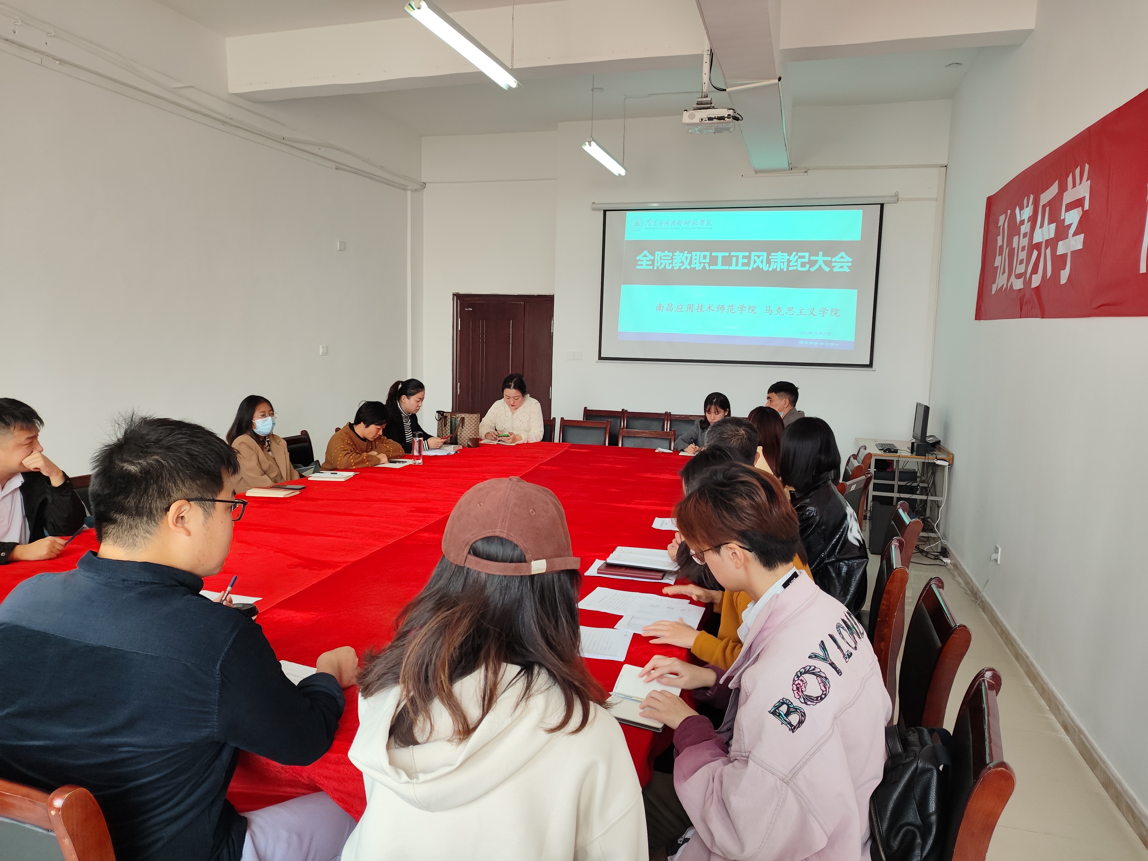 为进一步规范学院教职工的教学教学行为,加强教职工队伍的师德师风建设,按照学校对师德主题教育活动要求,今年会jinnianhui在11月23日周三下午1点30分在1508会议室开展了全院教职工正风肃纪主题活动,活动由副院长卢林保主持。