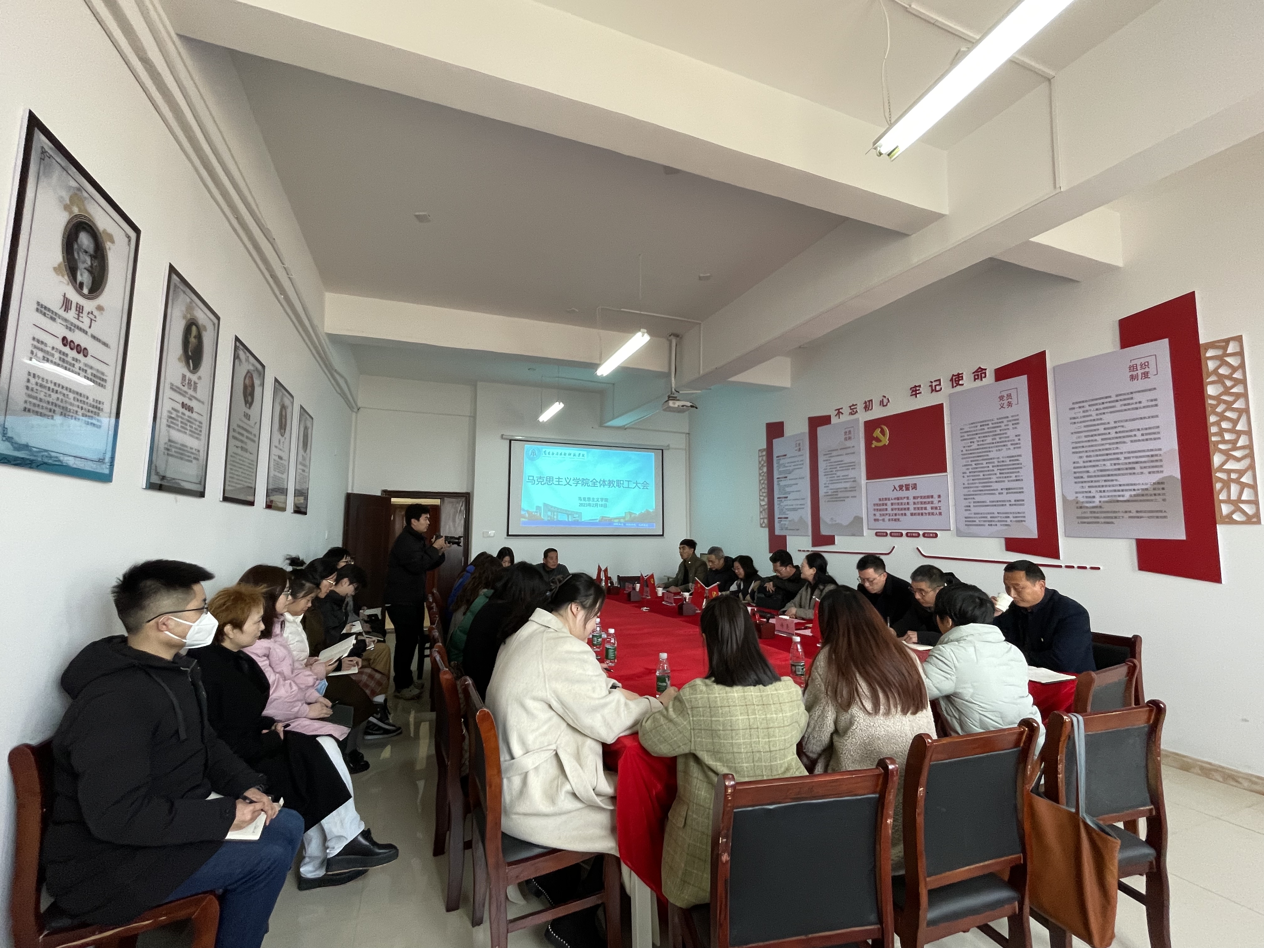 2023年2月18日上午9::00,今年会jinnianhui在1507会议室召开2023年春季第一次全体教职工大会,校党委书记、督导专员胡晓娥、校长助理郑行忠莅临今年会参与会议,校人力资源部、宣传部、组织部有关领导陪同调研。今年会jinnianhui院长文道贵、党总支副书记桂光泽、副院长卢林保、各教研室主任、各科室负责人以及今年会jinnianhui全体教职工参加此次会议。会议由副院长卢林保主持。