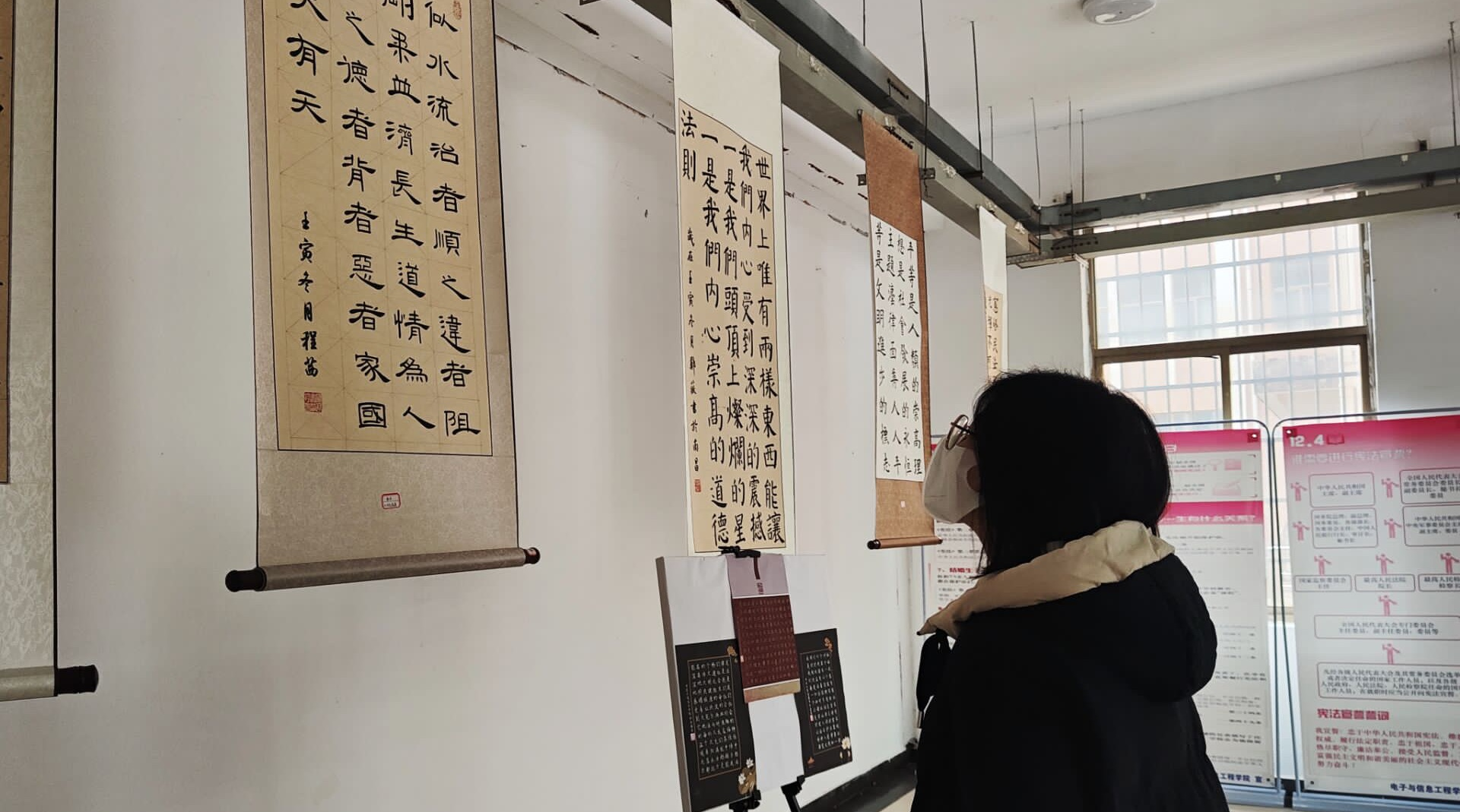 (图为同学们欣赏书法作品)