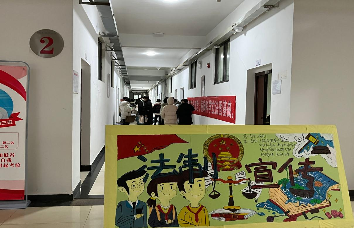 为迎接我国第二十个“法制宣传日”,贯彻依法治国理念,落实普法宣传教育,营造学法、知法、守法的校园氛围,丰富学生课后生活,提升学生法治知识,努力构建和谐、平安、文明校园。2022年12月2日我校于教学楼举办“学习法律知识,奏响二十大乐章”活动。