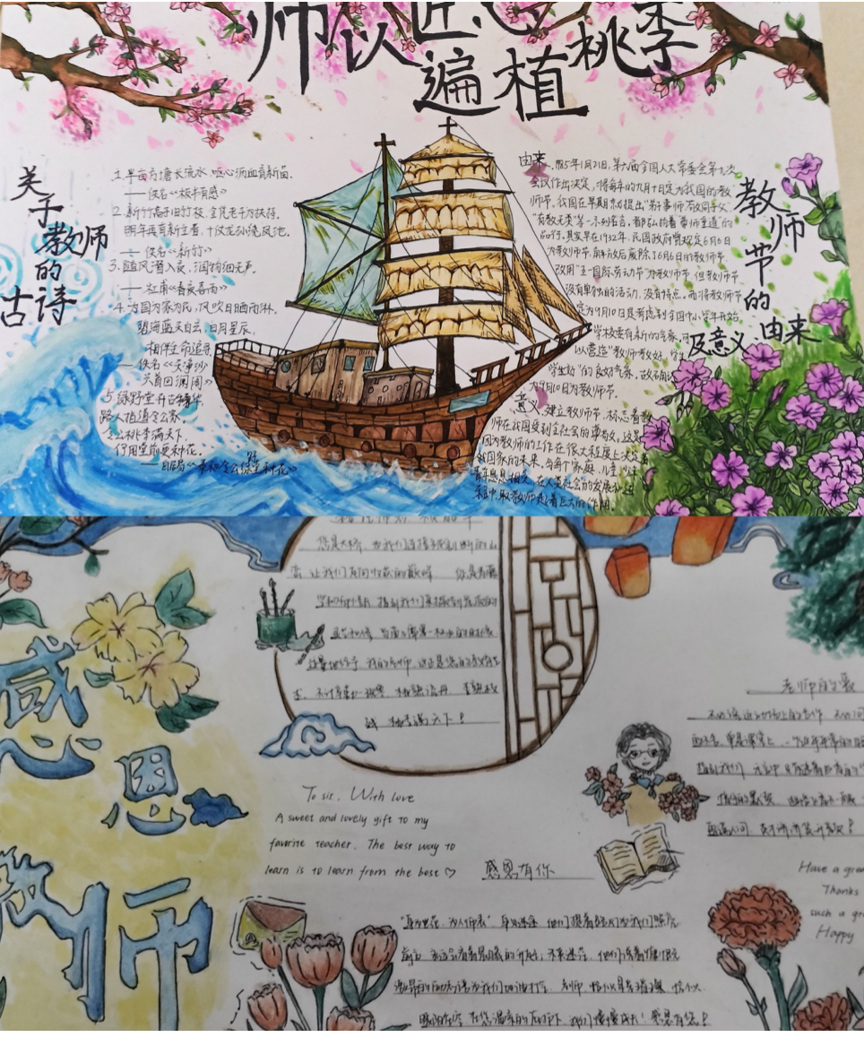 在这个崇高的节日里,为了体现同学们对老师诚挚的祝愿感激之情,加深师生之间的情感。在院学生会的组织下,开展此次活动,活动以手抄报和短视频形式来进行。在制作过程中,有些同学展现了自己出色的绘画才能,有些同学用朴实的语言表达他们对老师的尊敬,更表达了对老师深深的祝福!