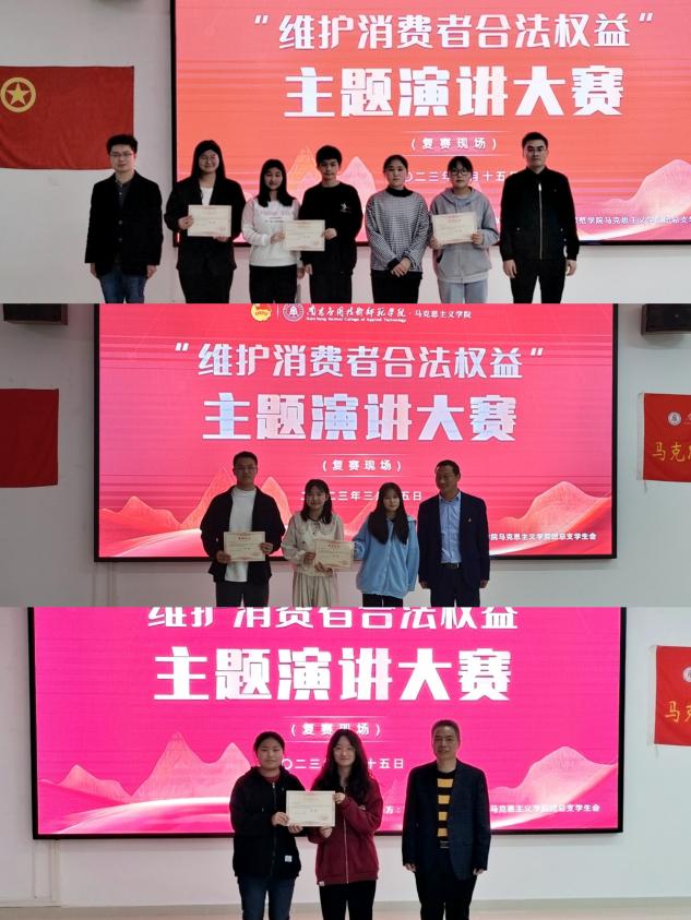 复赛于3月15日晚举行,参加复赛的同学们以PPT演讲的形式围绕“维护消费者权益”来讲述法律小知识。比赛过程中选手们围绕“维护消费者权益”主题用生动的语言展开演讲,通过举身边人、身边事的例子引起大家的共鸣,博得台下同学们的阵阵掌声,感染着评委,展现出我校青年的风采。评委老师们从语言表达、讲课内容、形象风度、会场效果、综合印象五个方面进行评分。在活动即将结束之际,今年会jinnianhui党总支副书记桂光泽对本次活动进行了最后的总结,对今年会学生会工作人员的工作做出了肯定的评价并且对每一位参加比赛的选手进行了鼓舞,号召大家积极参与二课堂活动,在实践中落实党的二十大精神。活动最后评选出一等奖1名,二等奖2名,三等奖3名,评委老师们分别为获奖选手依次颁奖。