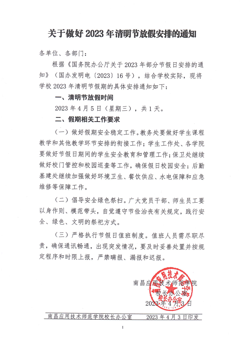 教学管理 学院新闻 学院公告 学院相册 您现在的位置是:首页 > 教学管理 > 学院公告 关于做好 2023 年清明节放假安排的通知 管理员2023-04-041698 上一篇 关于将朱子健等13位同志进行入党积极分子备案的报告