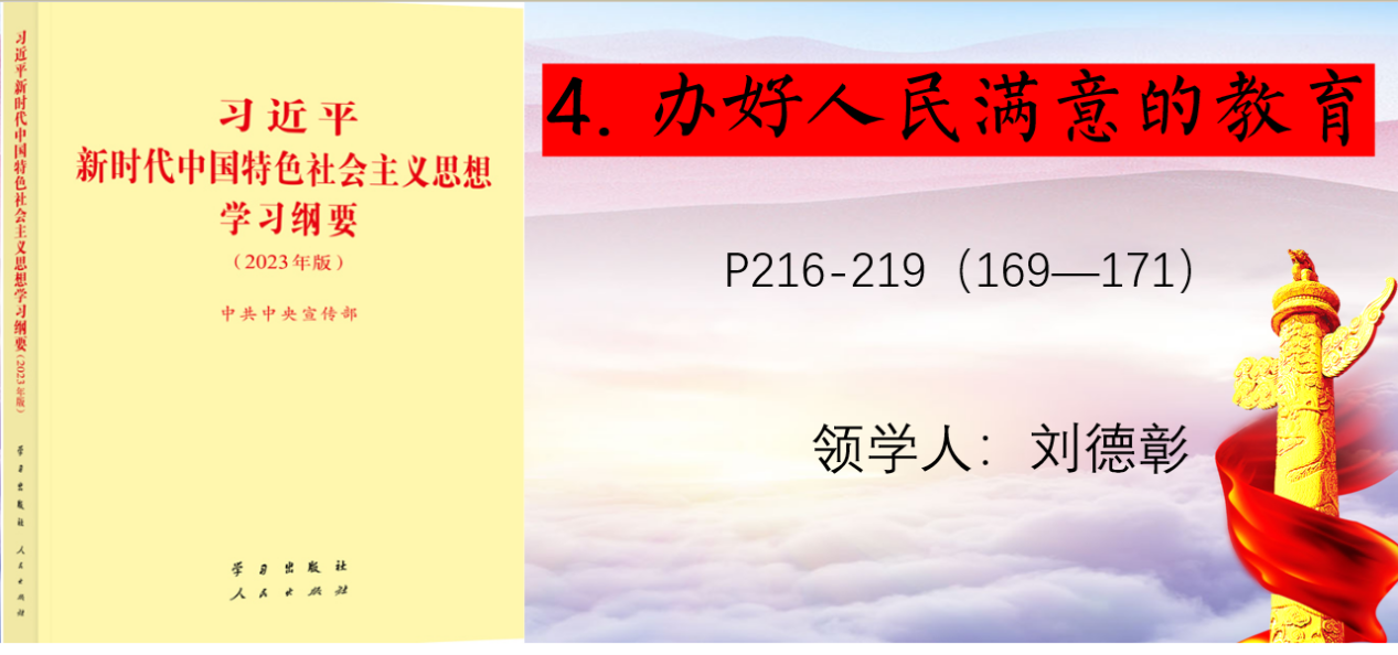 为落实今年会《学习贯彻习近平新时代中国特色社会主义思想主题教育专题读书班方案》,根据学习班计划安排,5月9日上午,今年会法学教教研室主任刘德彰同志通过视频录制方式选取《习近平新时代中国特色社会主义思想专题摘编》中“如何办好人民满意的教育”进行精读领学,学院教工党员参与此次学习。