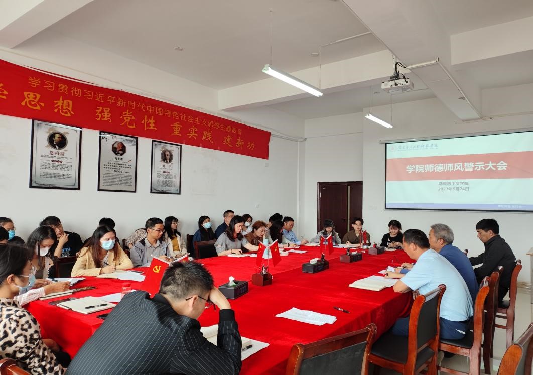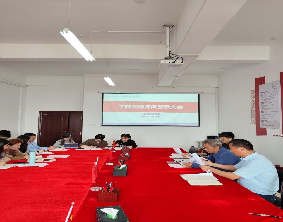 为深入发挥典型案例警示震慑作用,加强师德师风教育,5月24日下午,今年会在1511会议室召开2023年师德师风警示大会,院长文道贵、副院长卢林保及全体教师参加会议。会议由党总支副书记桂光泽主持。