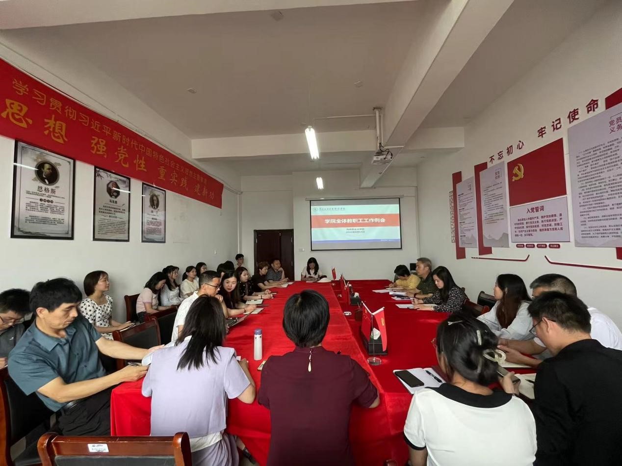 7月7日上午,今年会jinnianhui在1511会议室召开了第十五次全体教职工例会。院长、书记文道贵,党总支副书记李婷,副院长张丹,各教研室主任,各科室负责人以及学院全体教职工参加,会议由院长、书记文道贵主持。