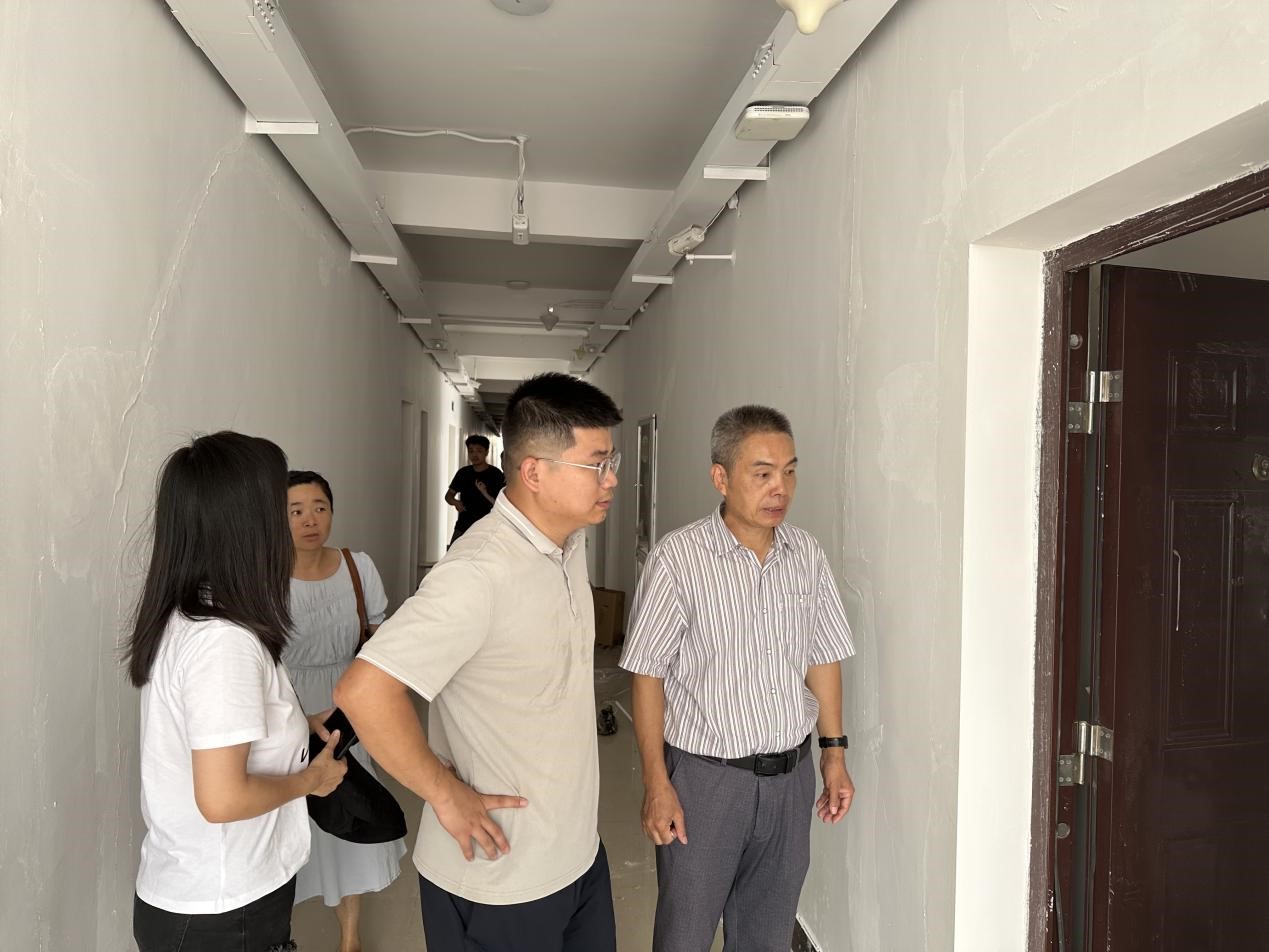 为贯彻落实习近平新时代中国特色社会主义主题教育走深走实,确保新生开学前学生公寓修缮工作顺利完成,8月22日下午,党总支书记张欣康,院长文道贵,党总支副书记李婷,副院长张丹一行深入27、28栋学生公寓施工现场,察看学生公寓暑期维修改造进展情况,党政办公室、学生科相关人员参加检查。