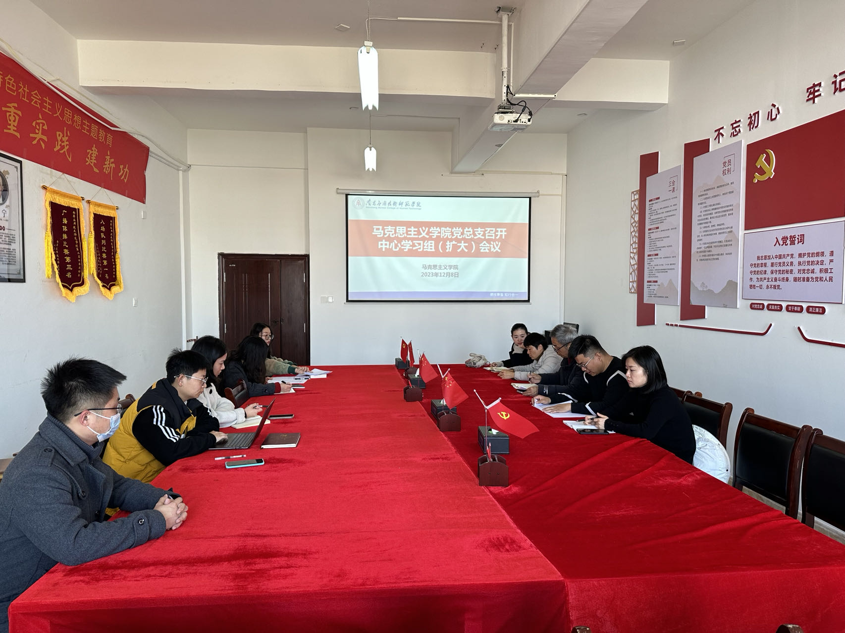 12月8日,马克思主义学院在1511会议室召开今年会jinnianhui党总支理论学习中心组会议,本次学习会由党总支书记张欣康主持,全体党总支委员参与会议。