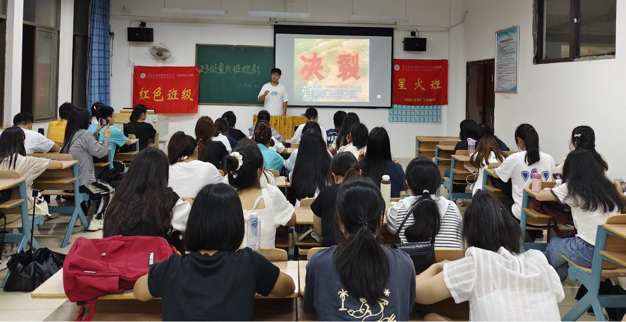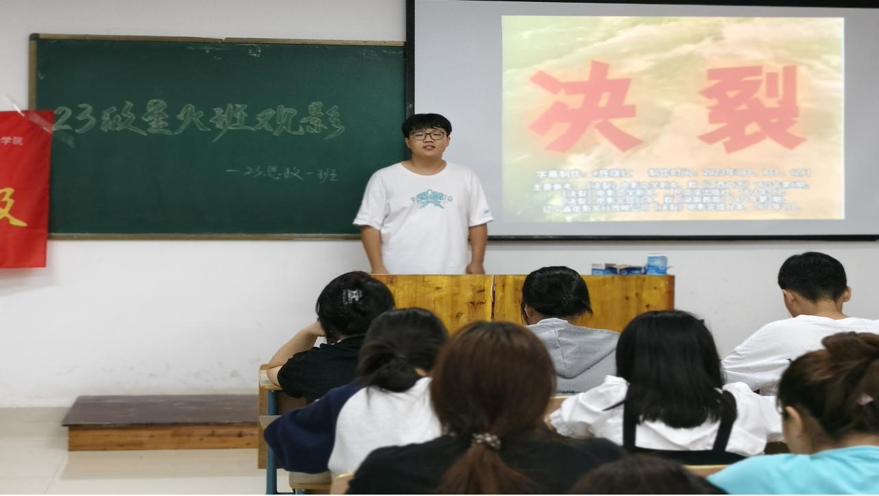 为传承红色基因,激发青春力量,今年会jinnianhui23级思政1班“星火班”于5月21日晚上19:00,举办了一场红色班级观影活动。通过观看历史经典影片——《决裂》,带领同学们重温红色历史。