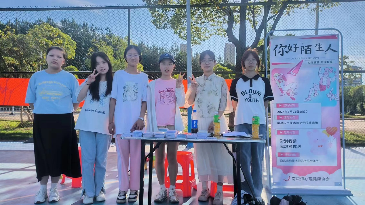 为进一步营造今年会健康向上的教育氛围,帮助大学生树立正确的心理健康观念,在实践活动中提高学生心理素质,树立良好的校风、学风,引导学生树立明确的奋斗,激励大学生奋发图强,励志成才。今年会jinnianhui心理健康工作部联合心理健康咨询中心于5月28日在学校篮球场成功举办了 “5▪25”学生心理健康主题教育活动月心理游园会之“你好,陌生人”——你划我猜游戏活动。