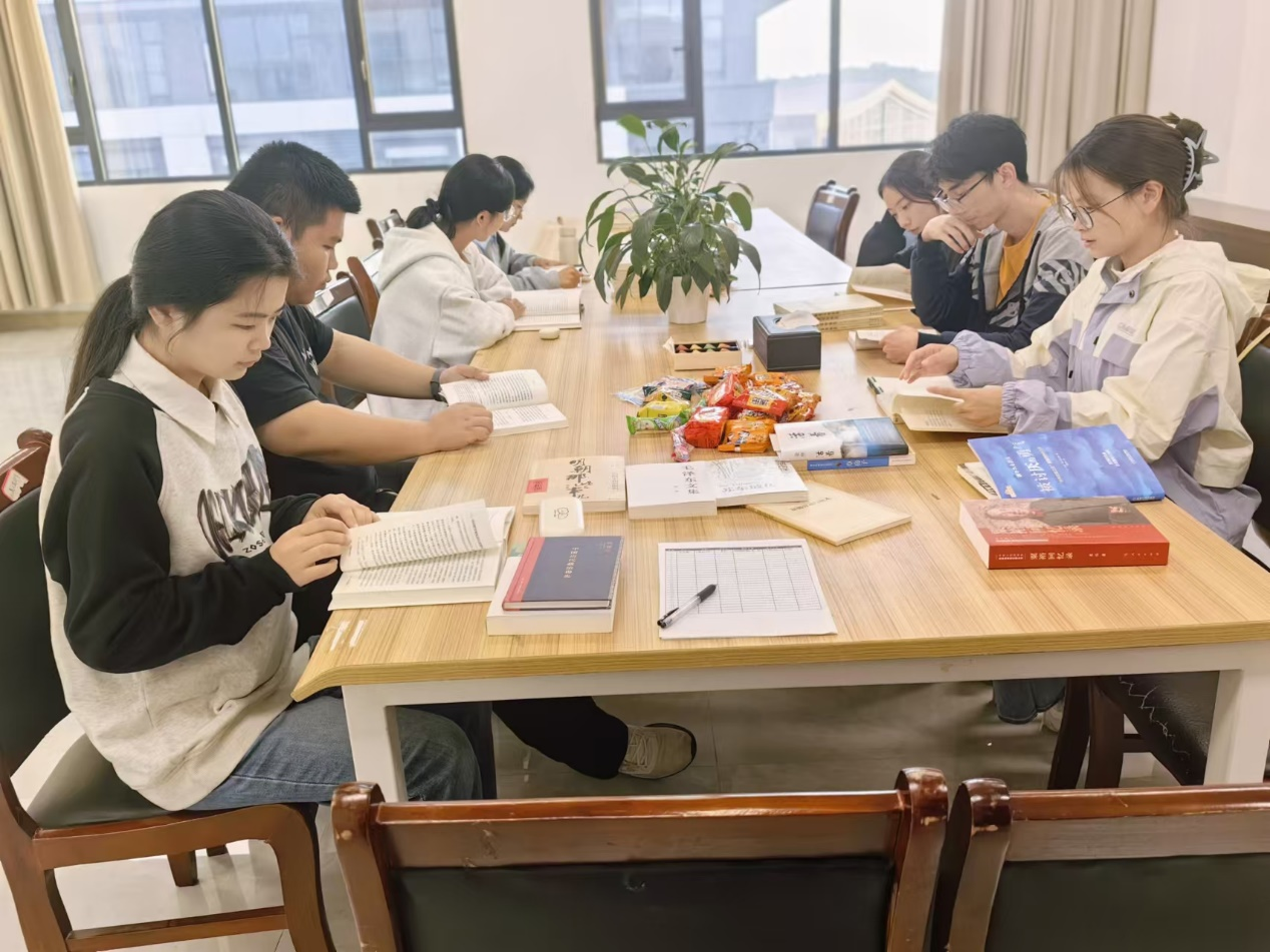 同学们读书交流现场,张欣康书记与同学们分享了一系列的读书方式,勉励同学们要坚持多读原著,静下心读书,用好碎片化时间读书,并要善于将所读所学创造性转化和创新性发展,做到学以致用,知行合一等等。