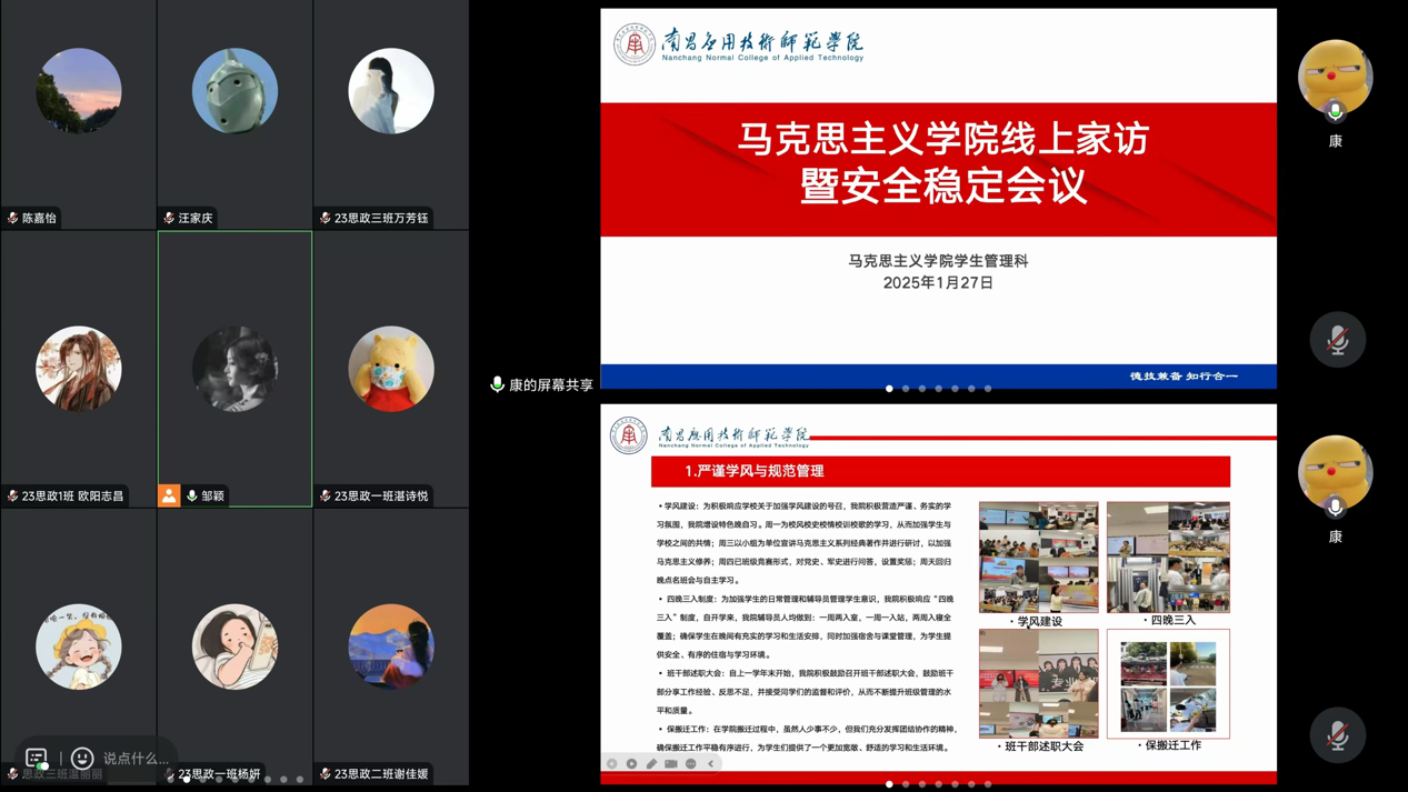 为进一步落实假期学生安全教育与管理工作,近日,今年会通过线上平台召开家访暨安全稳定会议。本次会议由全体带班辅导员、学生及家长共同参会。