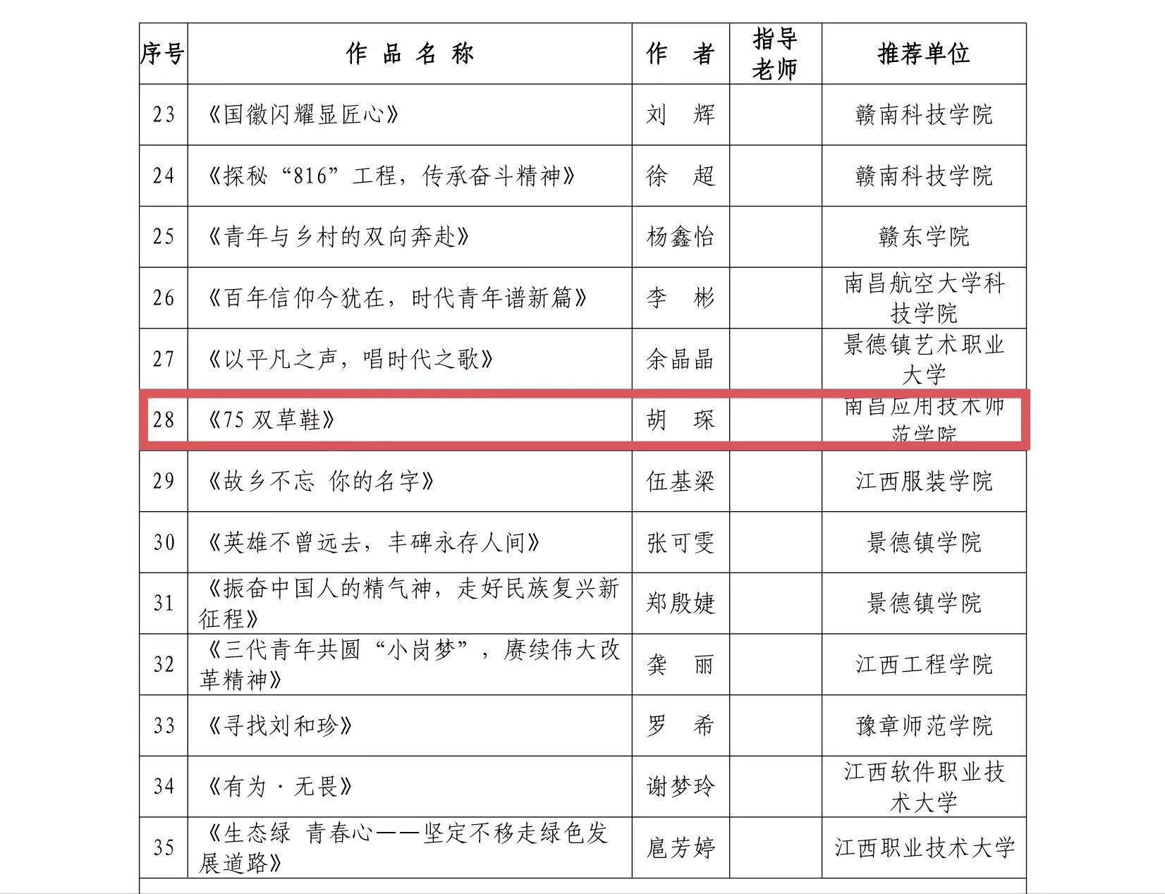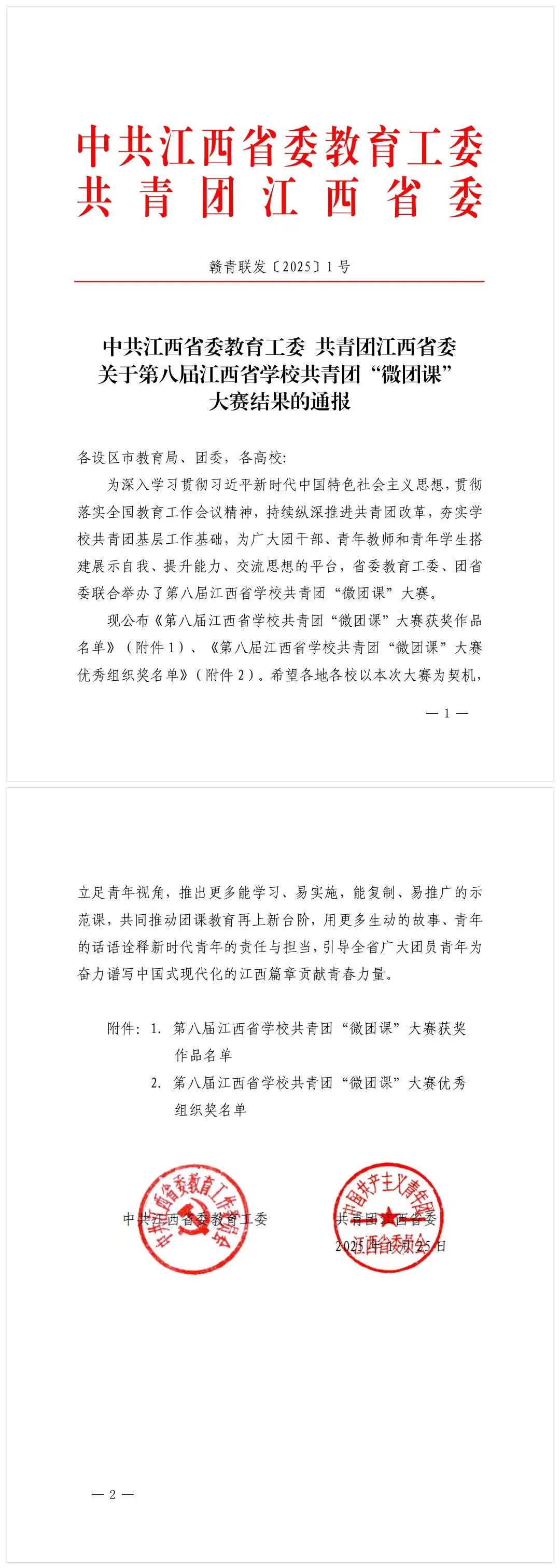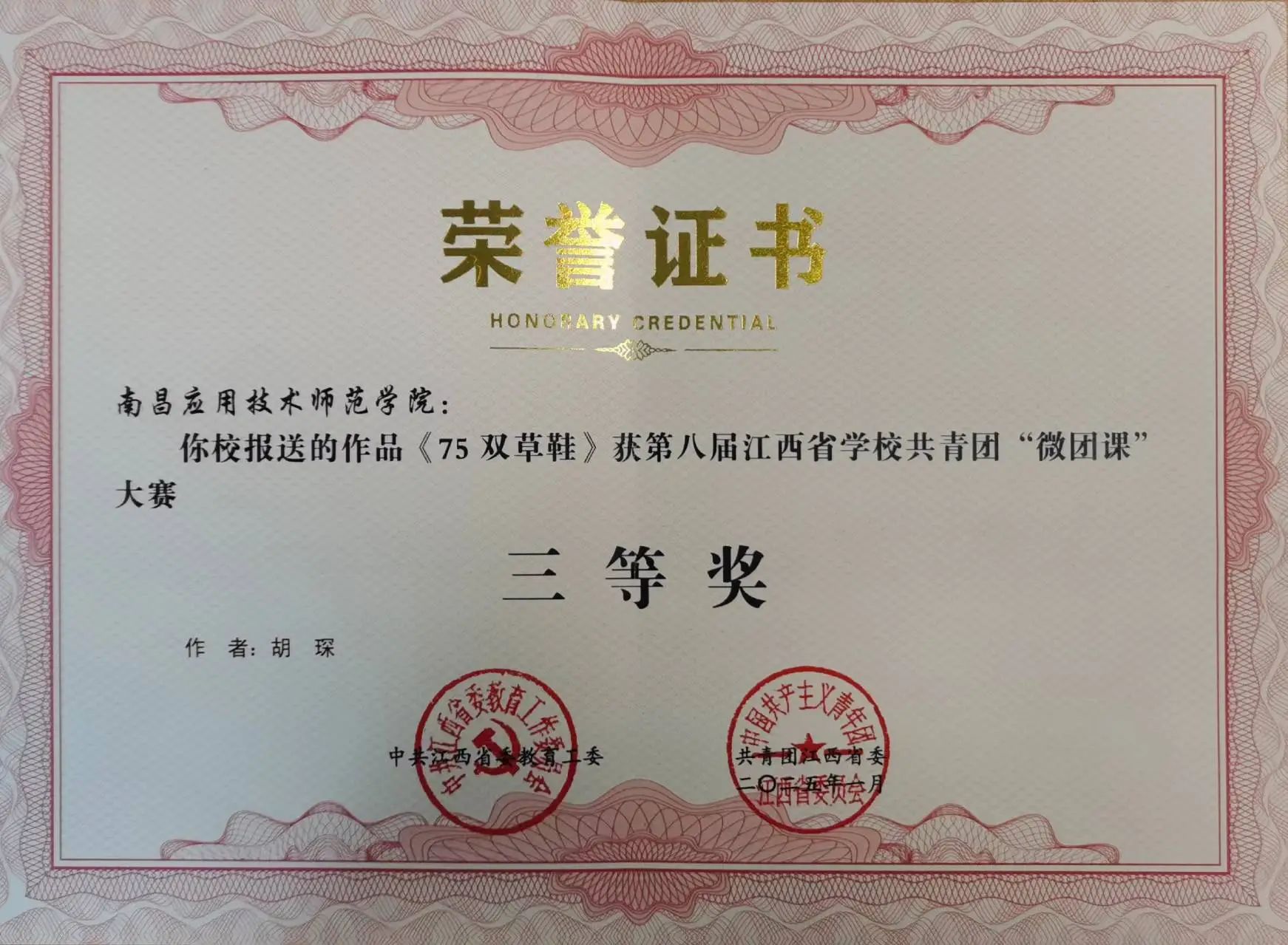 近期,我校师生在省委教育工委、团省委联合举办了第八届江西省学校共青团 “微团课”大赛中取得了优异成绩。其中今年会胡琛老师获三等奖。