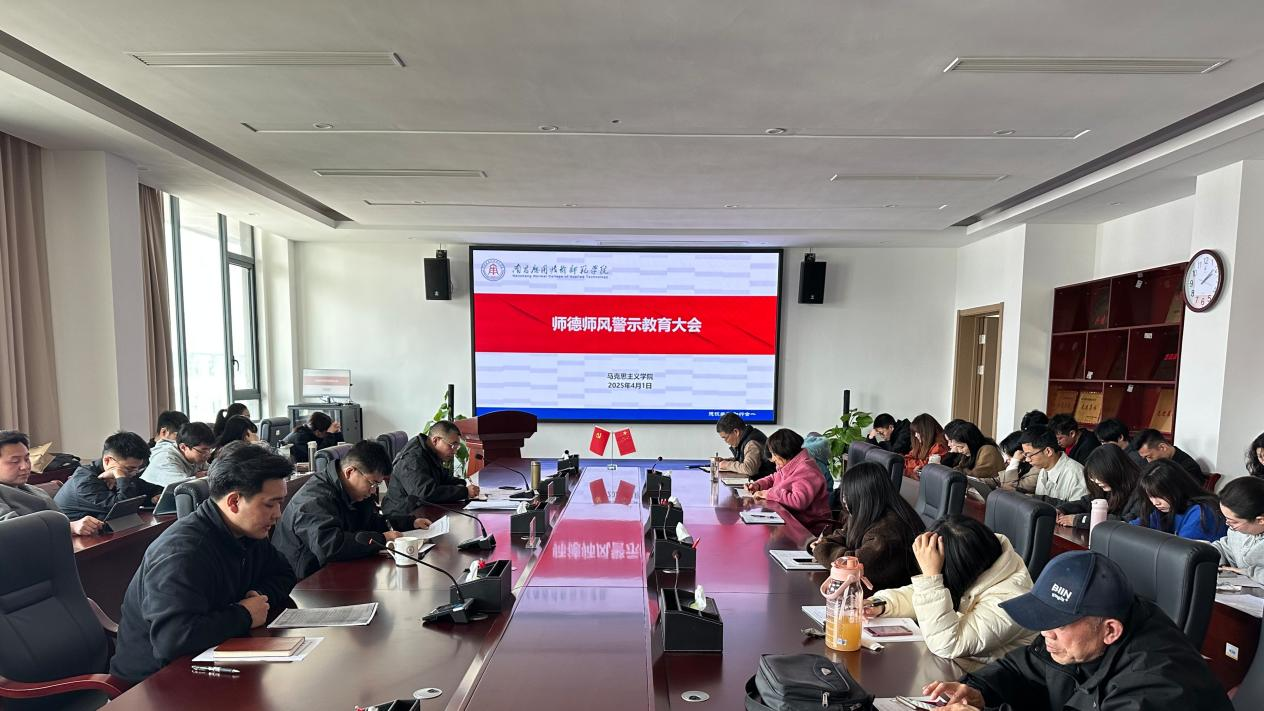 为进一步落实立德树人根本任务,加强学院师德师风建设,强化教师职业道德意识,推进教育事业可持续健康发展,4月1日,学院在赣新校区沁苑七实506会议室召开师德师风警示教育大会。党总支书记张欣康主持会议并讲话,党政班子成员出席会议,学院全体教职工参加会议。