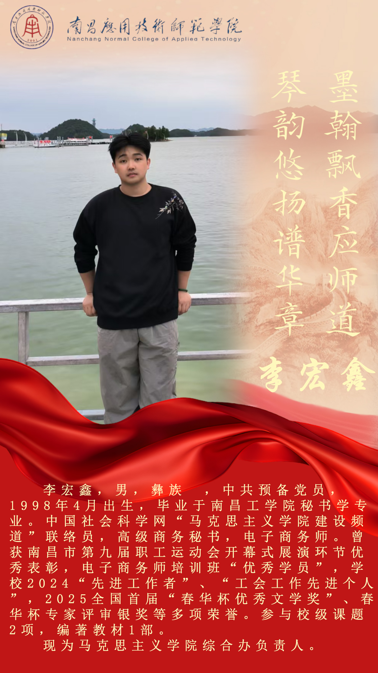 先进典型 优秀毕业生 优秀在校生 优秀教职工 您现在的位置是:首页 > 先进典型 > 优秀教职工 李宏鑫 先进工作者 管理员2025-04-172160 上一篇 邹颖 最美辅导员 下一篇 石仁凤 优秀教师