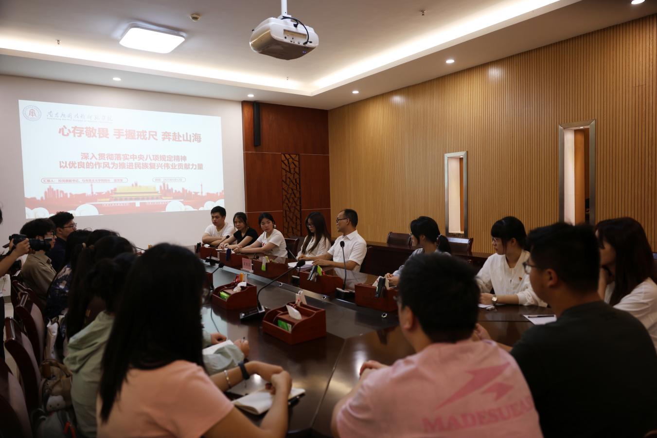 蓝贤发指出,中央八项规定不仅是党要管党、全面从严治党的有力抓手,更是每一名党员必须严格遵守的行为准则。作为新时代学生党员,要自觉对标对表,将纪律要求内化于心、外化于行。同时,结合学校纪检监察室下发的警示月报,以案促学。