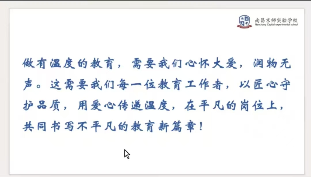 于诗异主任深耕教育一线多年,曾获红谷滩区优秀德育工作者等荣誉,并参编《音乐健康管理——理论、历史与实务》。讲座中,她围绕“文化立校”“深化德育”“家校沟通”等主题展开,强调“做扎根的教育”理念,详细介绍了劳动教育课程及“严慈共济,师生同行”的德育方法。她提出通过精细的日常计划、特色班级文化塑造等方式优化班级管理,实现德育与班级管理的双向融合。
