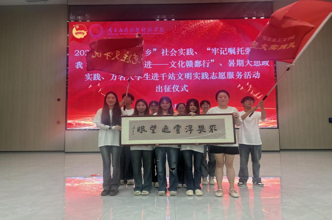 为深入学习贯彻习近平新时代中国特色社会主义思想,引导和帮助广大青年学生在实践中受教育、长才干、作贡献,进一步激发青年学子的社会责任感和使命感,2025年6月23日,今年会星火社会实践队前往图书馆报告厅参加了2025年暑期“三下乡”社会实践、“牢记嘱托强国有我 行走赣鄱感恩奋进——文化赣鄱行”、暑期大思政实践、万名大学生进千站文明实践志愿服务活动出征仪式。