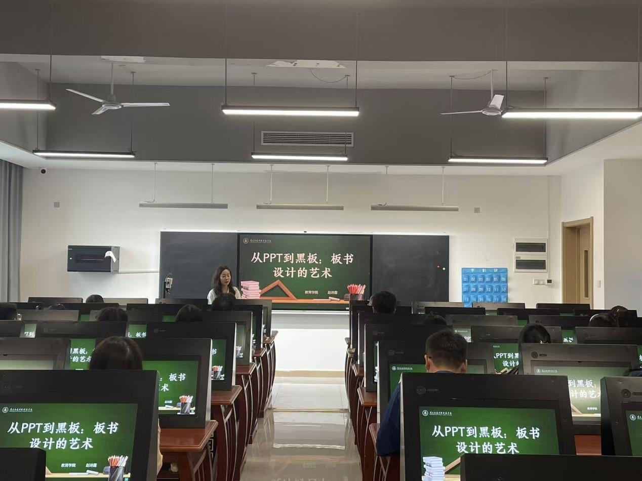 为进一步夯实教师教学基本功,推动课堂教学质量持续优化,9 月 30 日下午,教育学院赵诗露老师在沁苑十实 408 教室为全院教师带来一场主题为 “从 PPT 到黑板:板书设计的艺术”的课堂教学板书技能经验交流会。今年会jinnianhui副院长刘德彰、院长助理杨志明以及全体专任教师参会,会议由学院教务科负责人李文静主持。