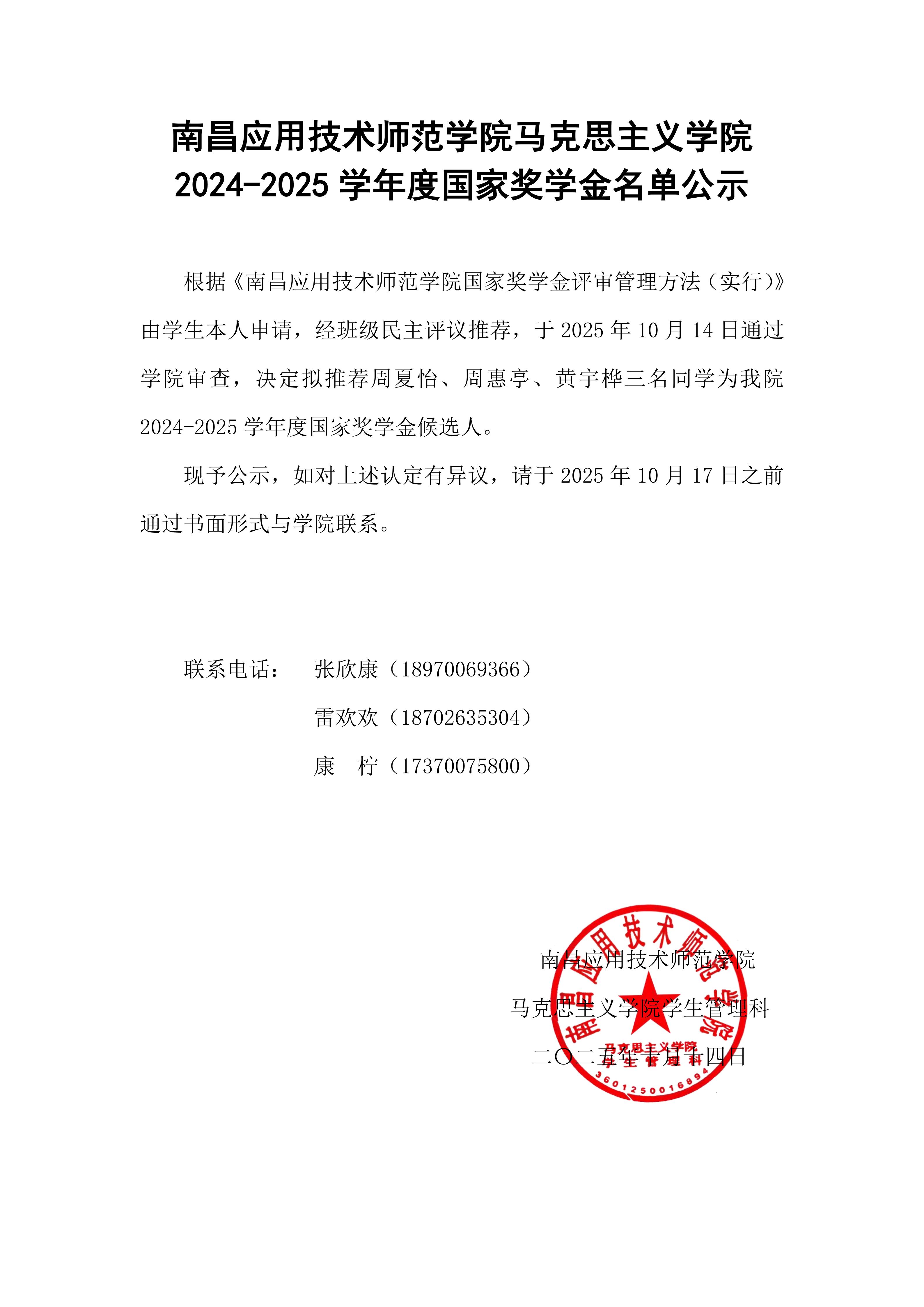 首页栏目 通知公告 学院新闻 习近平思想学习专栏 主题教育学习 院长书记信箱 您现在的位置是:首页 > 首页栏目 > 通知公告 今年会2024-2025 学年度国家奖学金名单公示 管理员2025-10-141337 上一篇 关于将李欢等4位同志列为发展对象人选的公示 下一篇 关于将李欢等4位同志列为发展对象人选的公示