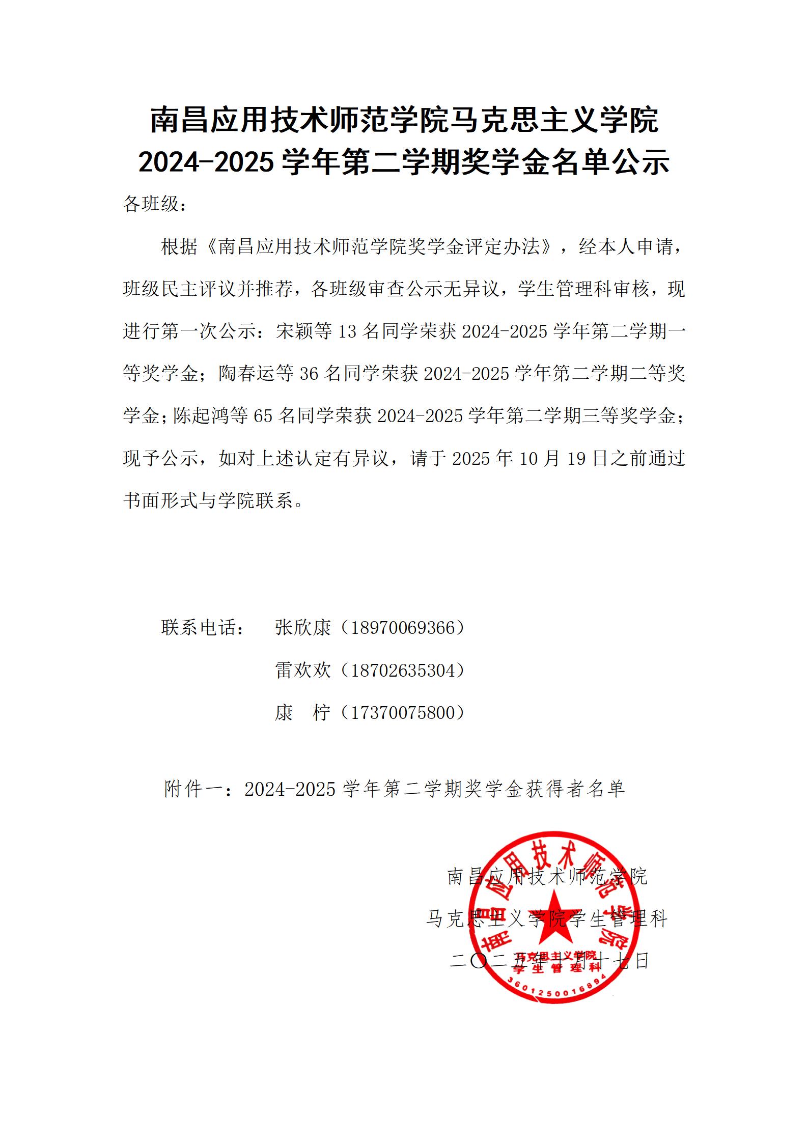 首页栏目 通知公告 学院新闻 习近平思想学习专栏 主题教育学习 院长书记信箱 您现在的位置是:首页 > 首页栏目 > 通知公告 今年会 2024-2025学年第二学期奖学金名单公示 管理员2025-10-171418 上一篇 今年会2024-2025 学年国家励志奖学金名单公示 下一篇 关于将李欢等4位同志列为发展对象人选的公示