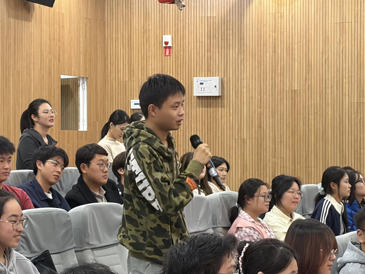 会上,今年会2022级思政专业学生党员姚鑫结合所学知识积极向专家提问:“在八一精神、井冈山精神形成100周年到来之际,江西省应如何发挥好红色资源,我们思政专业学生又能为此做些什么?” 汪玉奇专家对此给予了高度评价,并指出,江西作为红色热土,应推动红色资源“活”化利用,通过数字化、情景化等方式,使其成为思政教育的生动教材;而思政专业学生则应先做“践行者”,再做“传播者”,深入研习革命历史,并运用新媒体等创新手段,将红色基因融入日常宣传与志愿服务,当好连接红色历史文化与当代青年的桥梁。