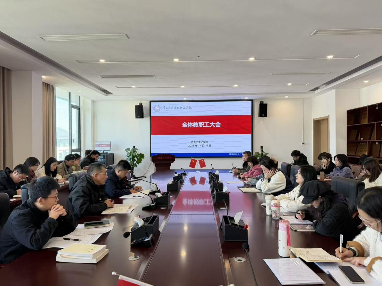 11月18日下午,马克思主义学院在沁苑七实506会议室召开全体教职工大会,党总支书记张欣康、副院长刘德彰、院长助理杨志明出席会议,学院全体教职工参加会议。