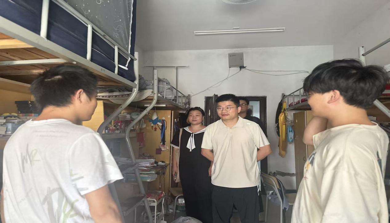 走访中,学院领导和辅导员们向毕业生详细询问备考的情况、求职进展及就业意向。"最近复习得怎么样?有没有需要学院提供的指导?""同学们对岗位薪资、发展空间有期待吗?"张欣康书记逐一关切询问,认真记录学生的需求与困惑,并结合自身经验为学生分析就业形势,鼓励大家保持积极心态,理性选择就业方向。雷欢欢副书记则重点关注毕业生的生活状态,查看宿舍环境,询问饮食、休息情况:"天气炎热,宿舍空调有没有问题?复习累了要注意劳逸结合,有困难随时找学院。"