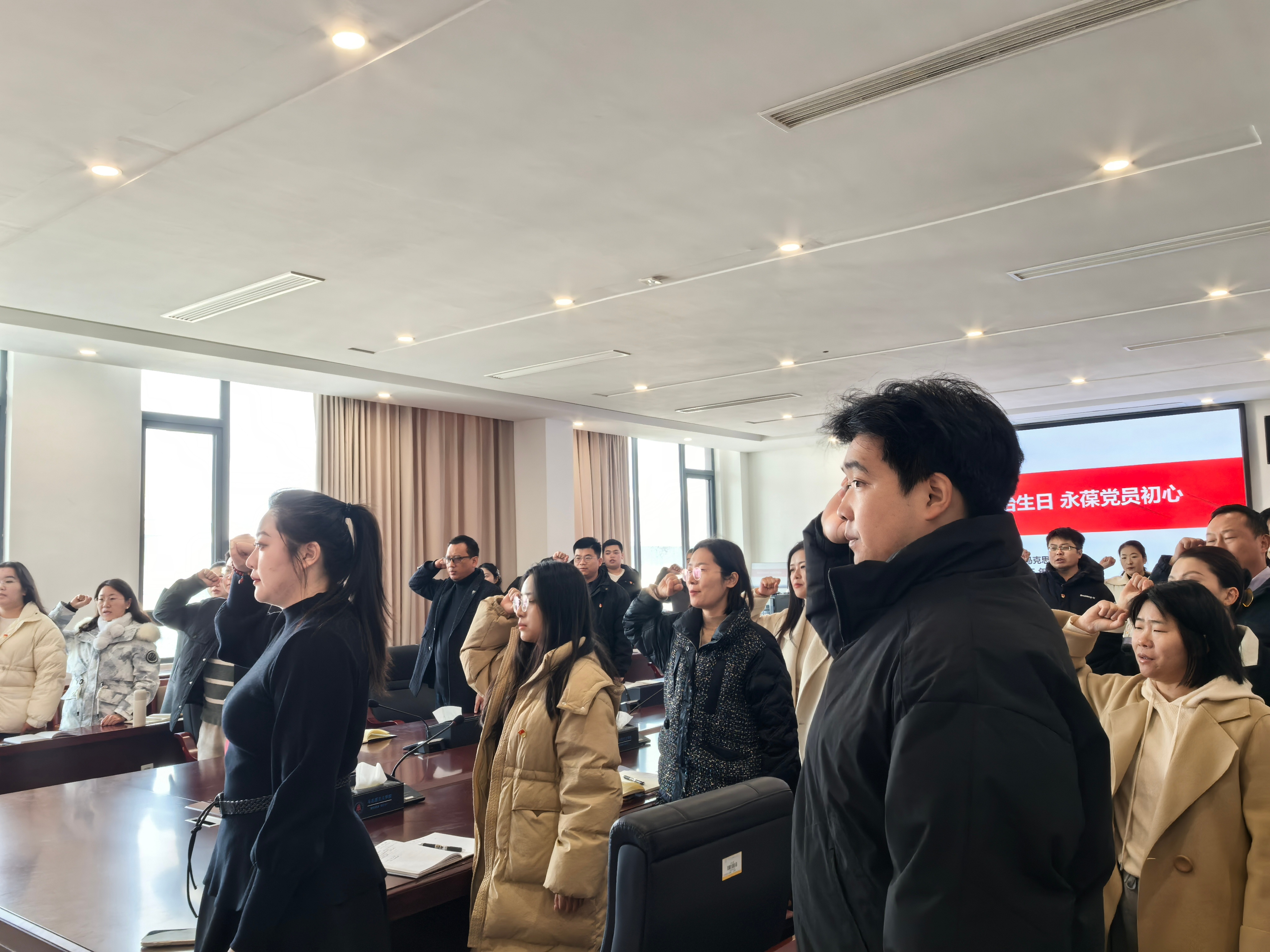 随后,全体党员面向鲜红的党旗,举起右拳,在领誓人的带领下庄严宣誓。“我志愿加入中国共产党,拥护党的纲领,遵守党的章程……”铿锵有力的誓言回荡在活动现场,不仅是对入党初心的重温,更是对使命担当的再承诺,让每一位党员再次感受到身为共产党员的光荣与责任。